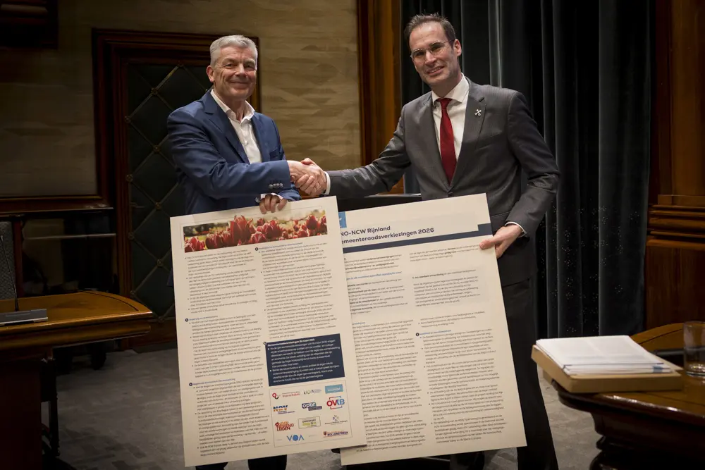 Ondernemersverenigingen maken zich, binnen de Koepel VNO-NCW Rijnland, sterk voor een gedegen ondernemers- en vestigingsklimaat in onze regio. Daarom overhandigde Tino Meijn, voorzitter VNO-NCW Rijnland, vanavond een manifest aan Peter Heijkoop, voorzitter van Regio Holland Rijnland, tijdens de vergadering van het Algemeen Bestuur.